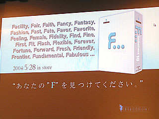 価格は「10 Desktop」と同じ1万6,590円で、60日間のインストールサポート付き。既存の「10 Desktop」ユーザーのための拡張パック「10 D2F...」も用意しており、こちらは7,140円で提供する。なお、商品名の「10F...」は、ユーザー自身が自分の「F」をみつけてほしいという思いがこめられているという。「F」が意味するところは写真を参照されたい。
